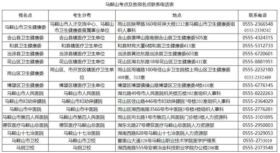 附件:馬鞍山考點及各報名點聯(lián)系電話表