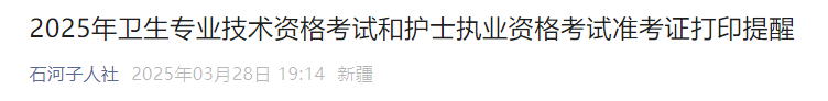 【新疆】2025年衛(wèi)生專業(yè)技術(shù)資格考試和護(hù)士執(zhí)業(yè)資格考試準(zhǔn)考證打印提醒