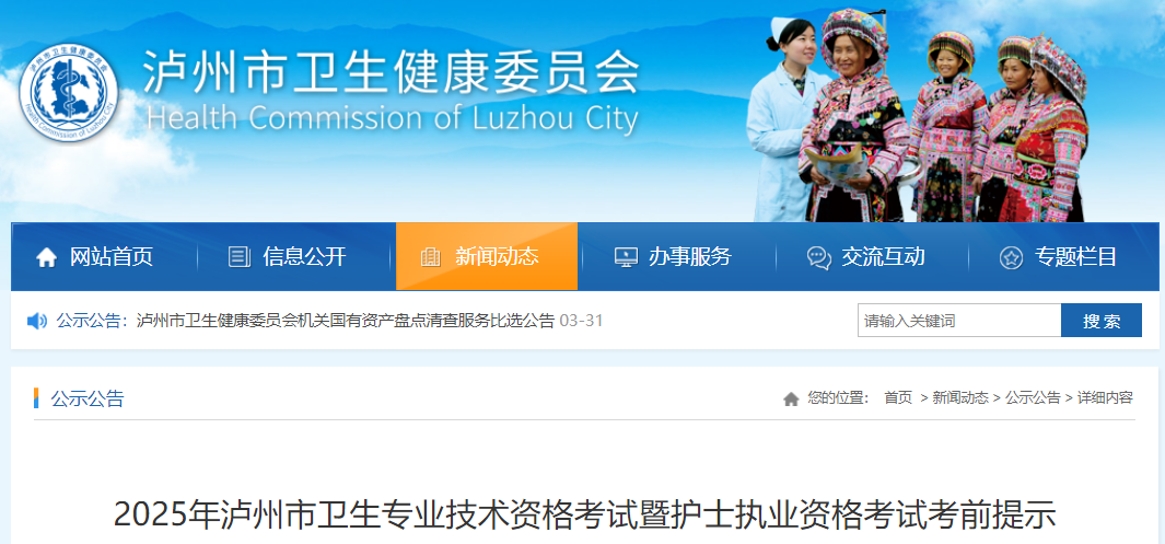 【四川瀘州】2025年瀘州市衛(wèi)生專業(yè)技術(shù)資格考試暨護(hù)士執(zhí)業(yè)資格考試考前提示