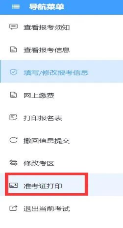 (五)在左側(cè)導(dǎo)航欄選擇 “準(zhǔn)考證打印”。