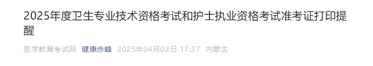【內(nèi)蒙古赤峰】2025年度衛(wèi)生專業(yè)技術(shù)資格考試和護(hù)士執(zhí)業(yè)資格考試準(zhǔn)考證打印提醒