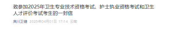 - · 云南致參加2025年衛(wèi)生專業(yè)技術(shù)資格、護(hù)士執(zhí)業(yè)資格考生的一封信