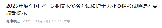 【廣東順德】2025年度全國衛(wèi)生專業(yè)技術(shù)資格考試和護士執(zhí)業(yè)資格考試考點溫馨提示