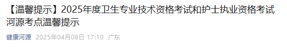 【廣東河源】2025年度衛(wèi)生專業(yè)技術(shù)資格考試和護(hù)士執(zhí)業(yè)資格考試溫馨提示