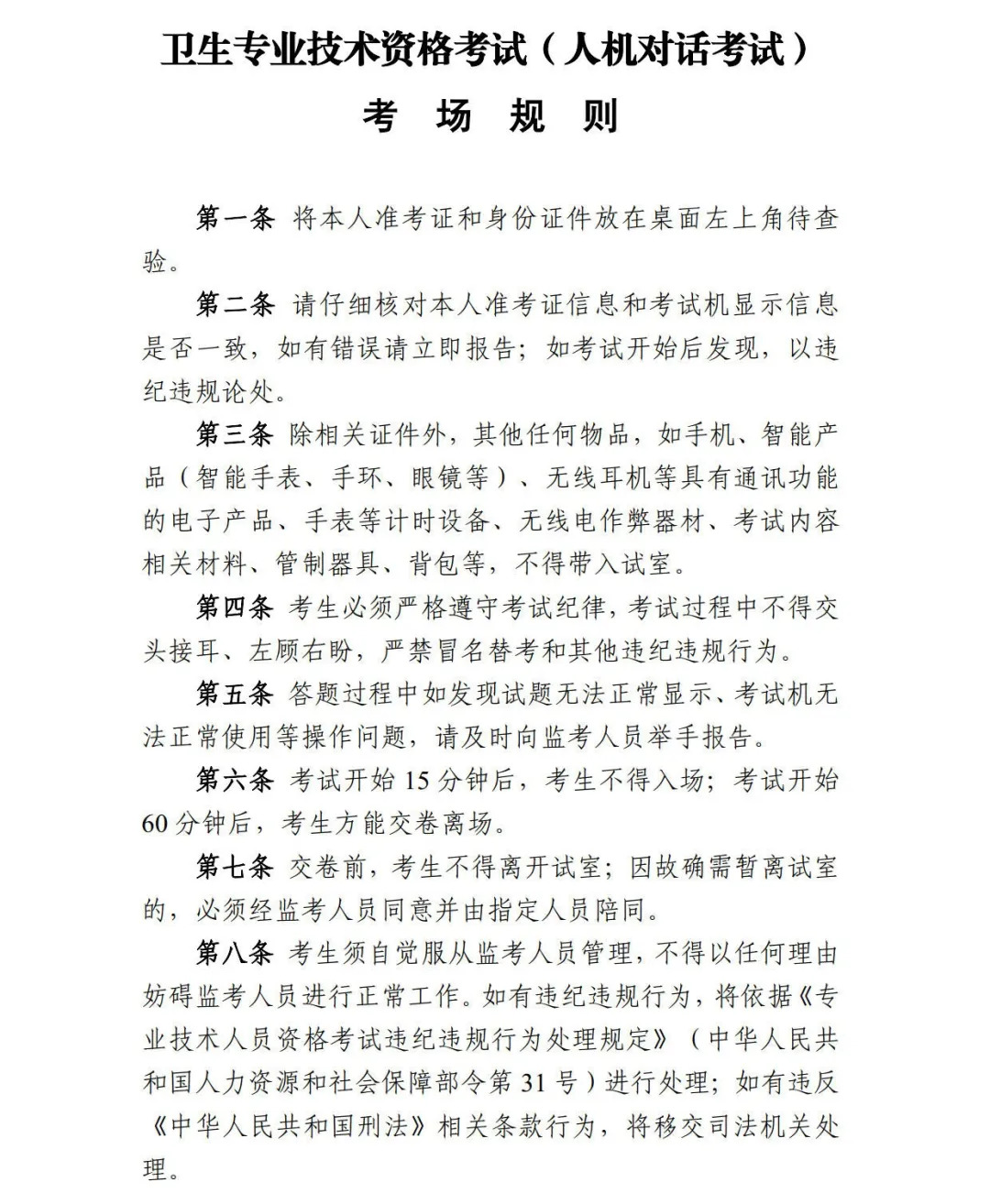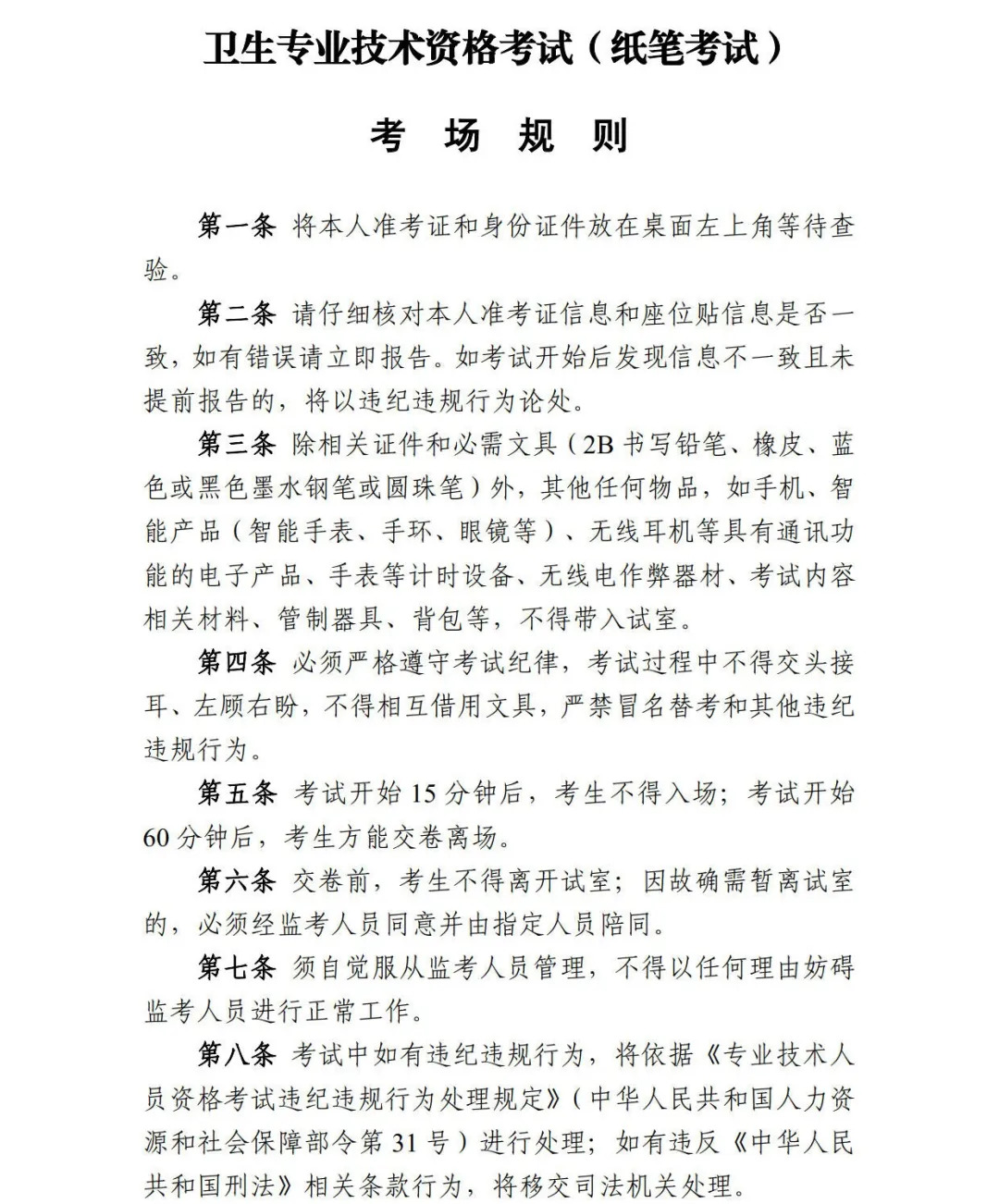 4、考生應(yīng)嚴(yán)格遵守考場紀(jì)律和規(guī)則,如有違紀(jì)違規(guī)行為將依據(jù)《專業(yè)技術(shù)人員資格考試違紀(jì)違規(guī)行為處理規(guī)定》(中華人民共和國人力資源和社會(huì)保障部令第31號(hào))作出處理。
