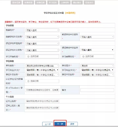 選擇第一項“囯(境)內學歷學位認證”,點擊下一步。