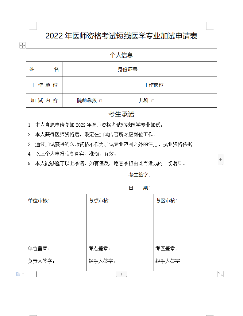 附件: 2022年醫(yī)師資格考試短線醫(yī)學(xué)專業(yè)加試申請表