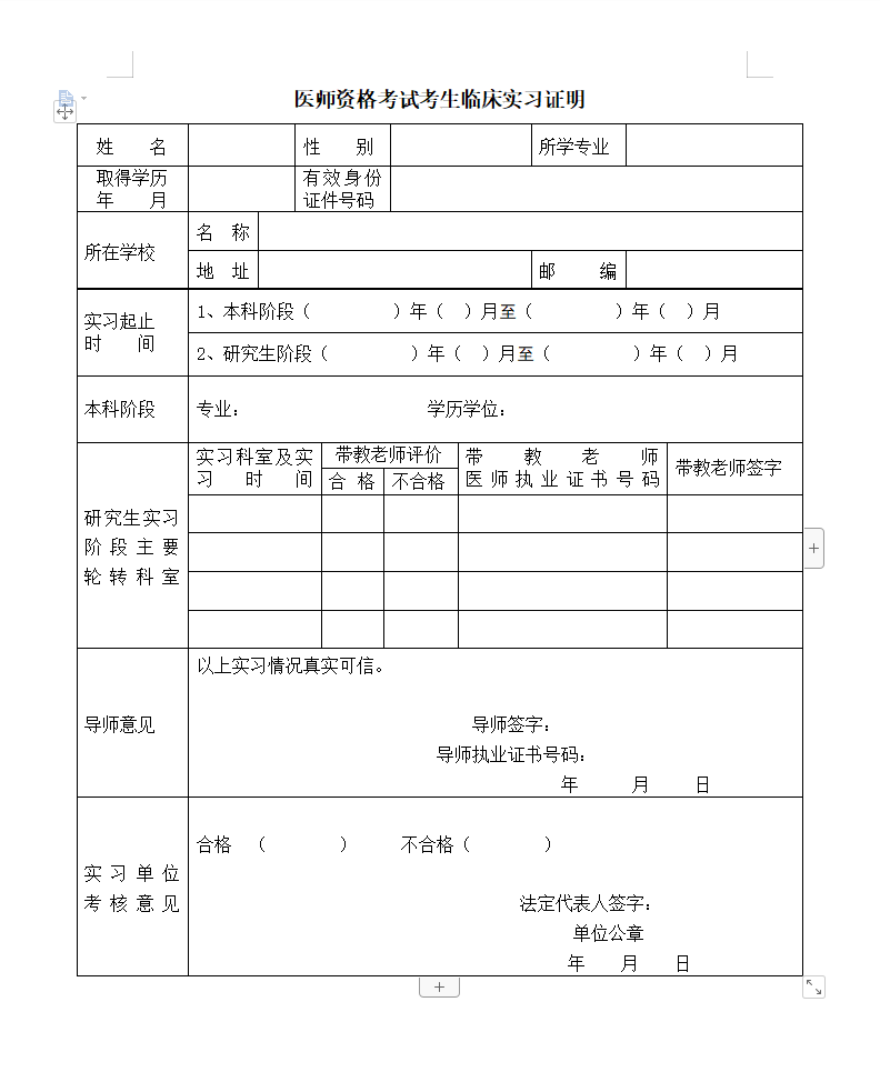 科碩研究生臨床1年實(shí)習(xí)證明-醫(yī)師報(bào)名審核材料下載