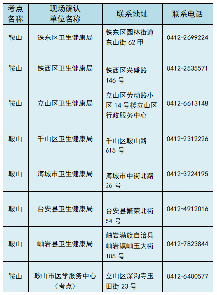 各縣市區(qū)衛(wèi)健局報(bào)名點(diǎn)