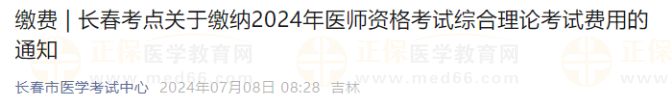 官方發(fā)布:吉林長春考點(diǎn)2024年醫(yī)師資格考試綜合理論考試費(fèi)用繳納安排及流程!請各位考生盡快登錄國家醫(yī)學(xué)考試網(wǎng)按時完成筆試?yán)U費(fèi)!