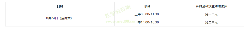 二、2019年鄉(xiāng)村全科執(zhí)業(yè)助理醫(yī)師綜合筆試考試時間為8月24日: