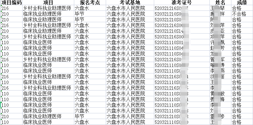 六盤水考點(diǎn)2021年鄉(xiāng)村全科助理醫(yī)師實(shí)踐技能考試成績/合格名單公示
