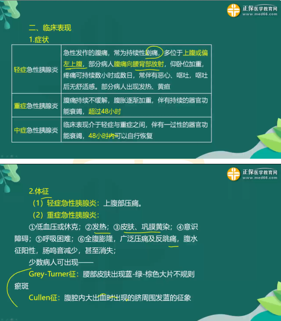 注意區(qū)分輕、中、重癥胰腺炎,以及兩個代表性體征。