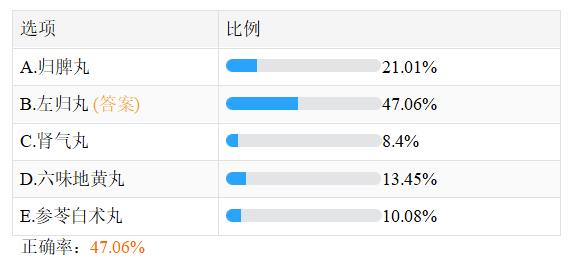 關(guān)于“左歸丸——2023年鄉(xiāng)村全科助理醫(yī)師摸底測試A2型題”的相關(guān)內(nèi)容,相信很多正在備戰(zhàn)2023年鄉(xiāng)村全科助理醫(yī)師考試的考生十分關(guān)注,此題在摸底測試50題(點擊參加測試>>)中正確率僅為47.06%,建議大家及時復(fù)習(xí),牢固掌握相關(guān)知識點!
