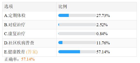關于“屬于針對非傳染病的一級預防措施的是——2023年鄉(xiāng)村全科助理醫(yī)師摸底測試A1型題”的相關內(nèi)容,相信很多正在備戰(zhàn)2023年鄉(xiāng)村全科助理醫(yī)師考試的考生十分關注,此題在摸底測試50題(點擊參加測試>>)中正確率僅為57.14%,建議大家及時復習,牢固掌握相關知識點!