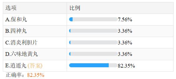 關(guān)于“逍遙丸——2023年鄉(xiāng)村全科助理醫(yī)師摸底測(cè)試A2型題”的相關(guān)內(nèi)容,相信很多正在備戰(zhàn)2023年鄉(xiāng)村全科助理醫(yī)師考試的考生十分關(guān)注,此題在摸底測(cè)試50題(點(diǎn)擊參加測(cè)試>>)中正確率僅為82.35%,建議大家及時(shí)復(fù)習(xí),牢固掌握相關(guān)知識(shí)點(diǎn)!