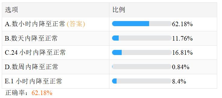 關(guān)于“體溫下降方式常為——2023年鄉(xiāng)村全科助理醫(yī)師摸底測試A3/A4型題”的相關(guān)內(nèi)容,相信很多正在備戰(zhàn)2023年鄉(xiāng)村全科助理醫(yī)師考試的考生十分關(guān)注,此題在摸底測試50題(點擊參加測試>>)中正確率僅為62.18%,建議大家及時復(fù)習(xí),牢固掌握相關(guān)知識點!