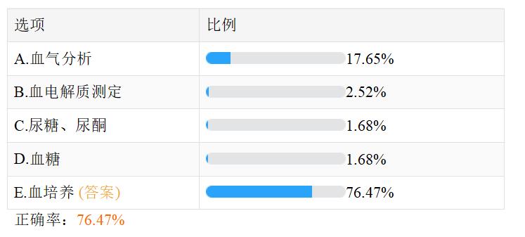 關(guān)于“血培養(yǎng)——2023年鄉(xiāng)村全科助理醫(yī)師摸底測試A3/A4型題”的相關(guān)內(nèi)容,相信很多正在備戰(zhàn)2023年鄉(xiāng)村全科助理醫(yī)師考試的考生十分關(guān)注,此題在摸底測試50題(點擊參加測試>>)中正確率僅為76.47%,建議大家及時復(fù)習,牢固掌握相關(guān)知識點!