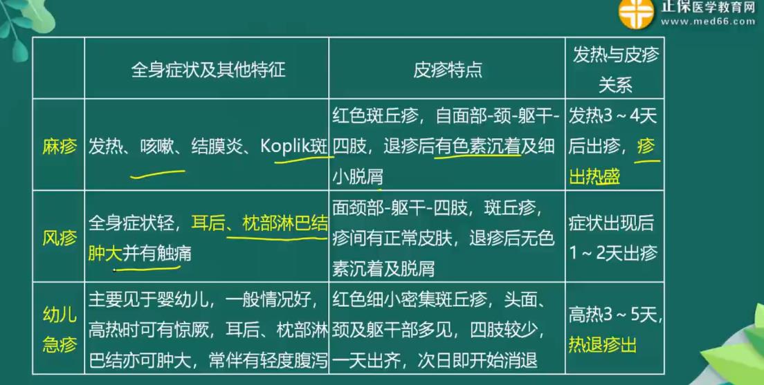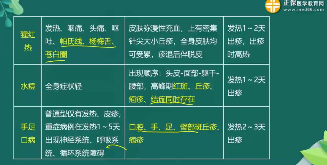 常見發(fā)疹性疾病包括麻疹、水痘、風(fēng)疹、幼兒急疹、手足口病、猩紅熱等,各種疾病的出疹時(shí)間、出疹特點(diǎn)容易混淆,對(duì)比記憶是省時(shí)省力的方法。