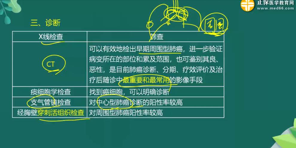 肺癌大多數(shù)起源于支氣管黏膜上皮,因此也稱支氣管肺癌。肺癌發(fā)病率目前位居惡性腫瘤首位。肺癌的臨床表現(xiàn)、診斷是需要重點(diǎn)掌握的,下面我們就來看看吧。