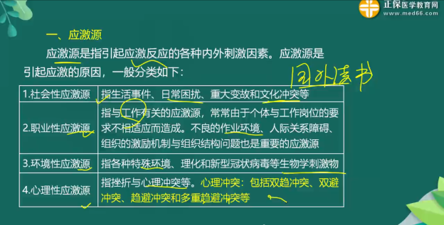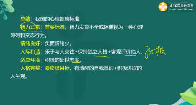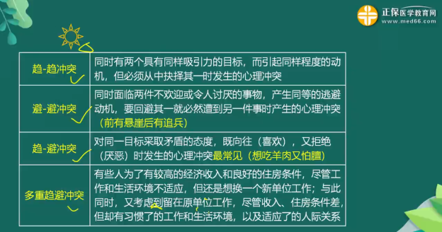 心理健康(mental health)也稱心理衛(wèi)生——指以積極有益的教育和措施,維護和改進人們的心理狀態(tài),去適應當前和發(fā)展的社會環(huán)境。我國的心理健康標準、應激源、心理沖突屬于常考知識點,請大家重點掌握。