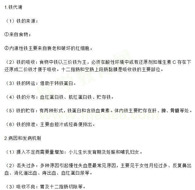 缺鐵性貧血—鄉(xiāng)村全科助理血液系統(tǒng)考點