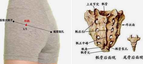 定位:在臀區(qū),股骨大轉(zhuǎn)子最凸點與骶管裂孔連線的外1/3與內(nèi)2/3交點處。
