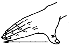 (1)拇指平推法:肘關(guān)節(jié)屈伸幅度較小,以拇指及腕臂部主動用力,做短距離單方向直線推動。
