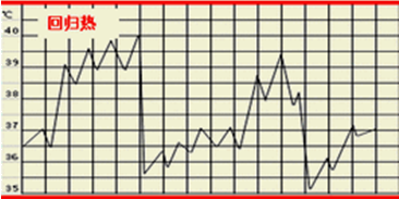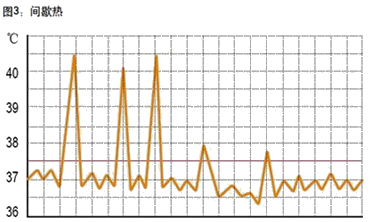 (2)弛張熱:敗血癥,39℃以上,24小時(shí)內(nèi)波動(dòng)范圍達(dá)2℃以上。