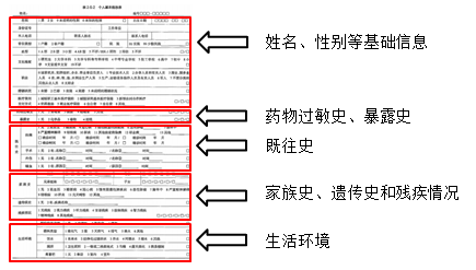 包括姓名、性別等基礎(chǔ)信息和既往史、家族史等基本健康信息。