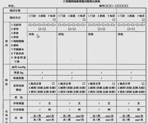 2021年鄉(xiāng)村全科助理醫(yī)師筆試:2型糖尿病隨訪記錄服務(wù)表