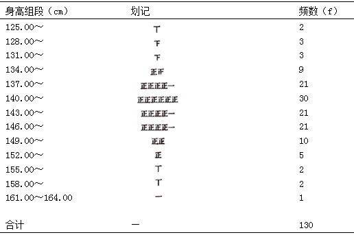 表2-2-3 某年某鄉(xiāng)14歲女孩身高頻數(shù)分布表