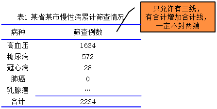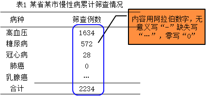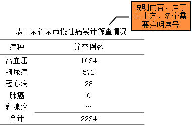 標題 | 標題應概括說明表的主要內(nèi)容,標題寫在表的上方正中,多個統(tǒng)計表應在標題前標明序號 |