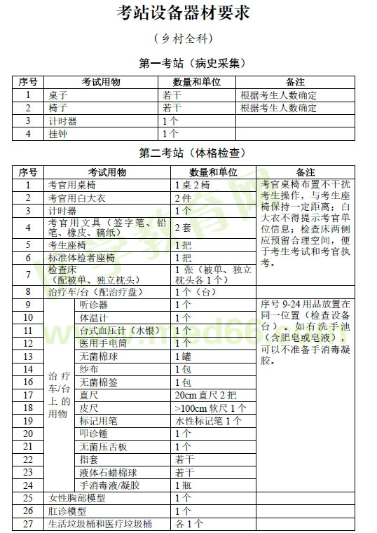 “2019年鄉(xiāng)村全科助理醫(yī)師實(shí)踐技能各考站設(shè)備器材要求(附清單)”由醫(yī)學(xué)教育網(wǎng)編輯整理搜集,更多考試信息敬請(qǐng)關(guān)注醫(yī)學(xué)教育網(wǎng)