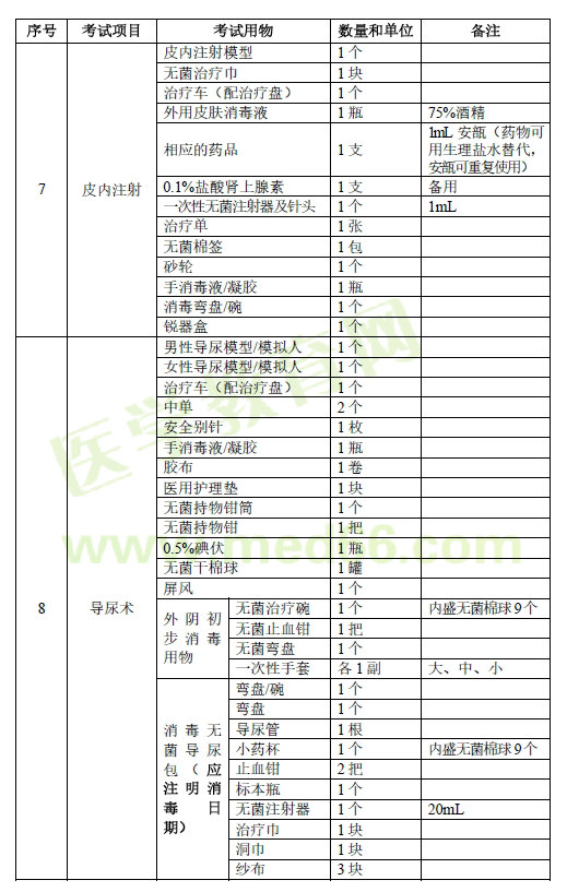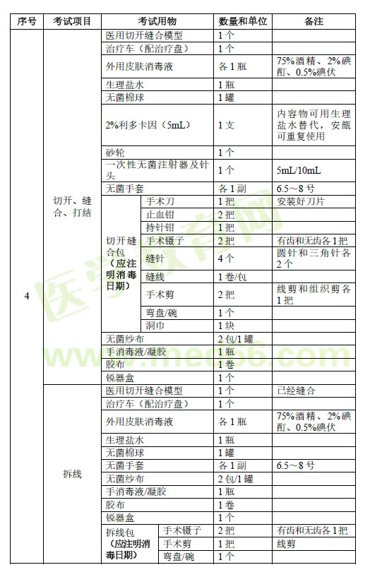 (1)考試內(nèi)容:臨床基本操作。 (2)考試方式:在模擬人或模型等設(shè)備上操作,按要求回答問題。