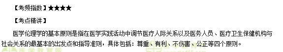醫(yī)師醫(yī)學(xué)倫理的基本原則,該內(nèi)容是整個(gè)醫(yī)學(xué)倫理學(xué)最重要的部分。常見于A1、B型題,需要重點(diǎn)記憶,醫(yī)學(xué)道德的基本原則,記憶加理解、前后聯(lián)系牢固掌握醫(yī)學(xué)道德的四個(gè)基本原則。具體知識(shí)點(diǎn)內(nèi)容及習(xí)題練習(xí)整理如下: