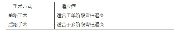 解析: ①頸椎病的手術(shù)入路見(jiàn)下表。②該患者表現(xiàn)為C5——6間盤突出,即單階段脊柱退變,故首選前路手術(shù)。