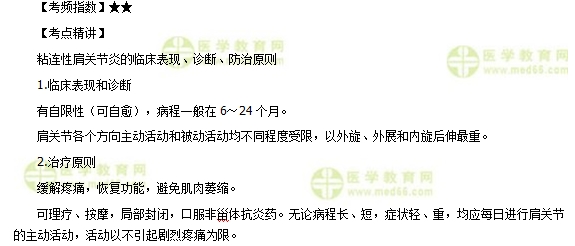 - · 【知識點+例題】2023鄉(xiāng)村全科助理醫(yī)師:粘連性肩關(guān)節(jié)囊炎
