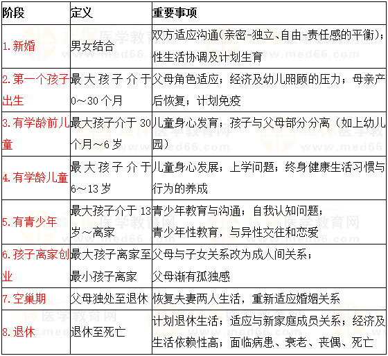 2023鄉(xiāng)村助理醫(yī)師拿分考點(diǎn)家庭生活周期各階段對(duì)比