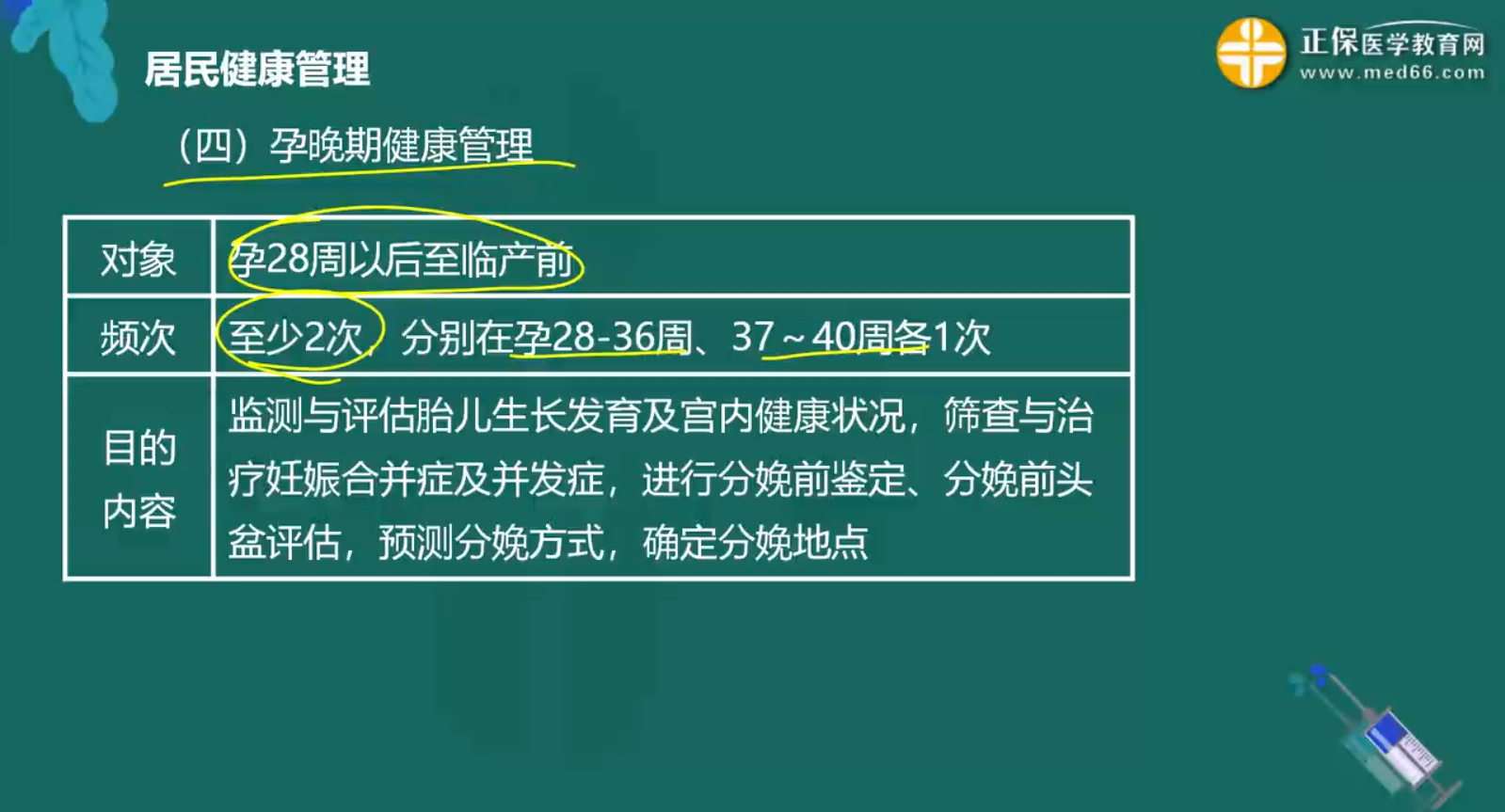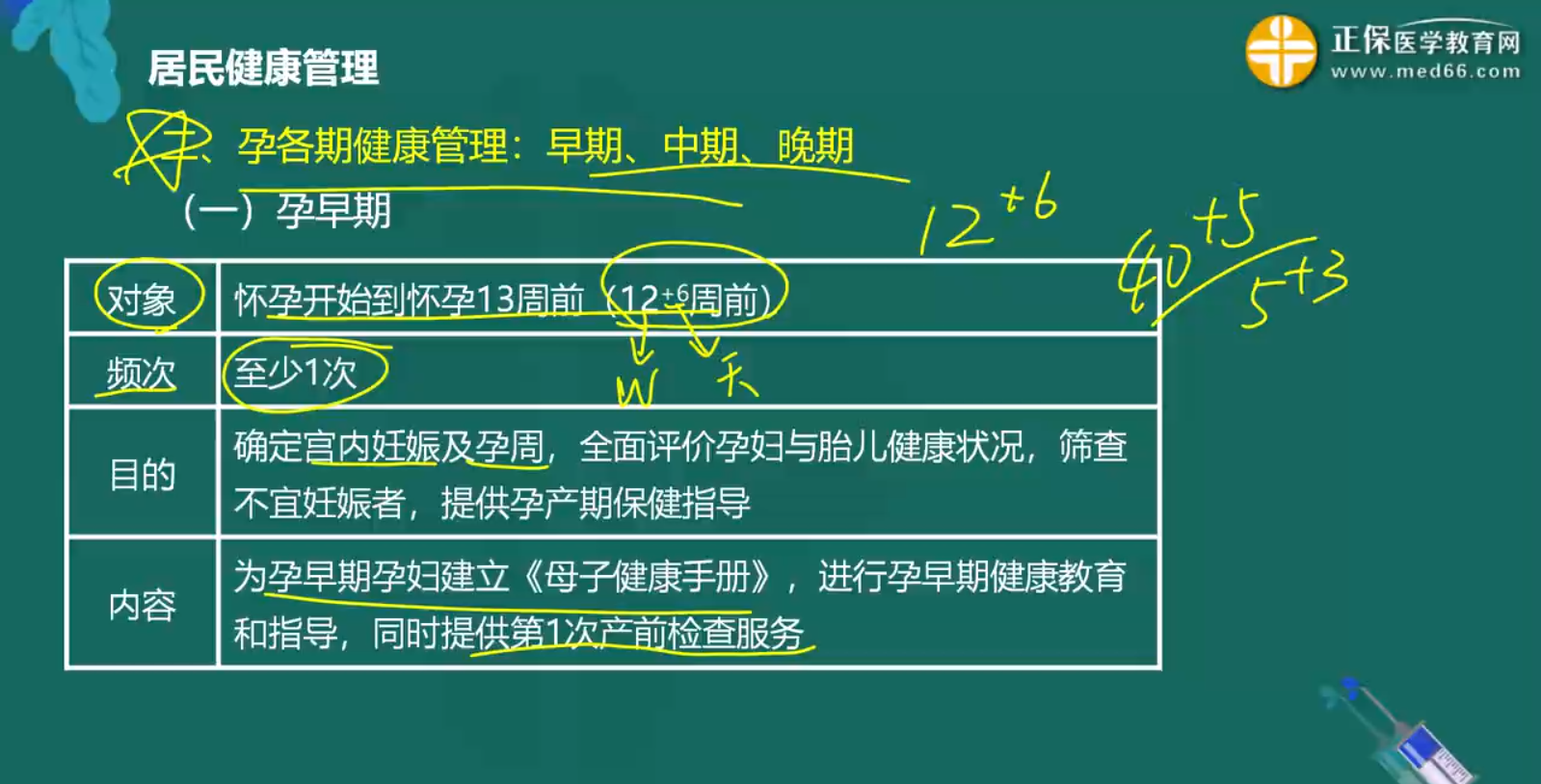 孕期對(duì)孕婦和胎兒的管理很重要,早、中、晚各期健康管理服務(wù)的對(duì)象、目的、內(nèi)容各有不同,請(qǐng)根據(jù)各期的特點(diǎn)去區(qū)分記憶。