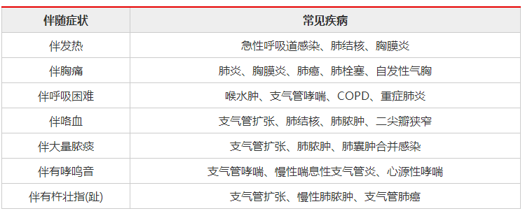 咳嗽咳痰的病史采集要點(diǎn)總結(jié)表:伴隨癥狀與對(duì)應(yīng)的常見(jiàn)疾病