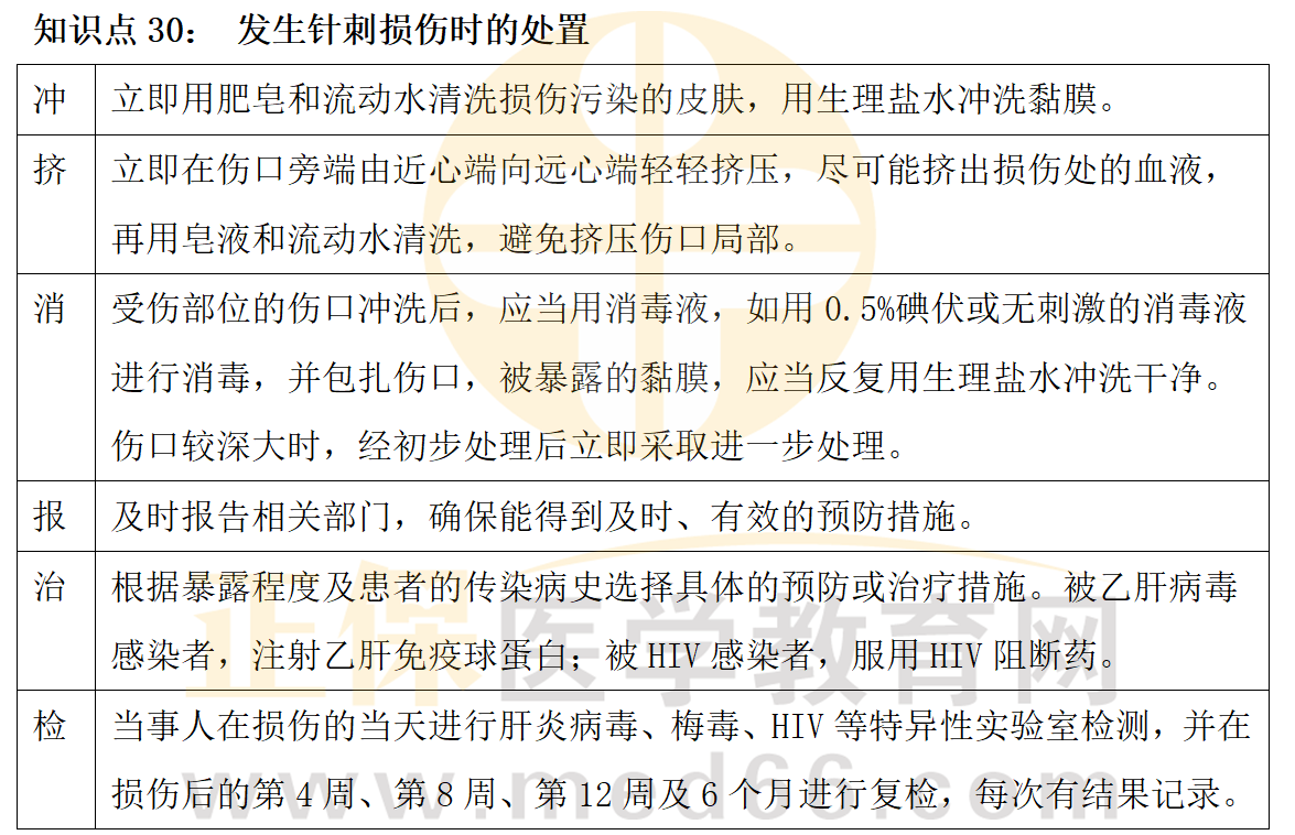 一表搞定鄉(xiāng)村助理醫(yī)師技能知識點(diǎn)發(fā)生針刺損傷時的處置