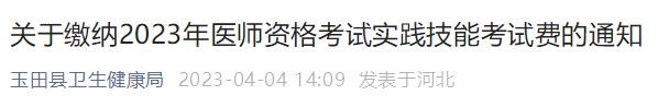 2023年河北考區(qū)玉田縣鄉(xiāng)村全科助理醫(yī)師實踐技能網(wǎng)上繳費截止4月9日