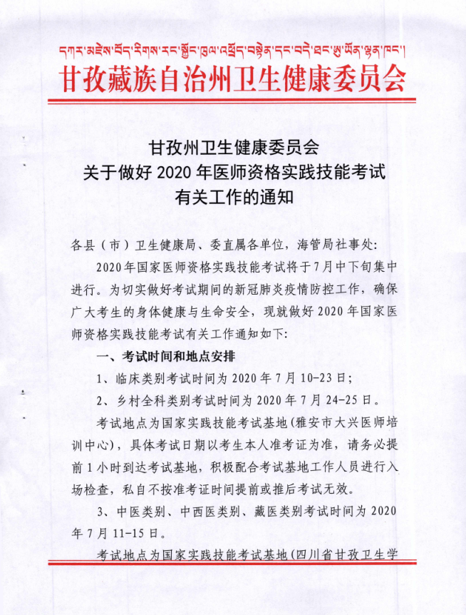 四川甘孜州2020年鄉(xiāng)村全科助理醫(yī)師實踐技能考試時間通知,醫(yī)學(xué)教育網(wǎng)小編整理如下: