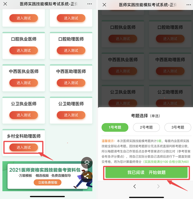 針對所有考生免費開放!2021年鄉(xiāng)村全科助理醫(yī)師考試實踐技能??枷到y(tǒng)上線啦!