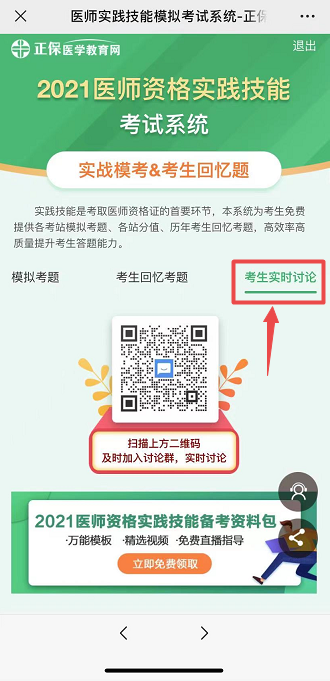 第四:考試期間大家可識別下圖中的二維碼及時加群,實時討論;交流模擬試題目,估分吐槽,還可以點擊底部“2021醫(yī)師資格實踐技能備考資料包”還有4G免費實踐技能視頻等你免費領!