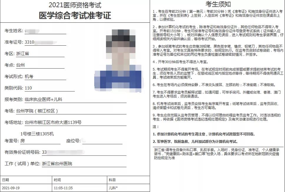 2021年臺(tái)州市醫(yī)師資格考試考生應(yīng)試須知:
