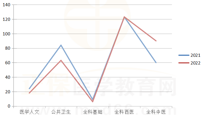 1.全科中醫(yī)的考試比例明顯提升,其他醫(yī)學人文、公共衛(wèi)生、全科基礎考試分值均是下降的。且上升幅度和下降幅度均較大。