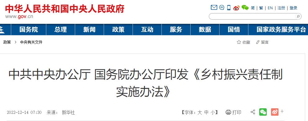 關(guān)于印發(fā)《鄉(xiāng)村振興責(zé)任制實(shí)施辦法》通知