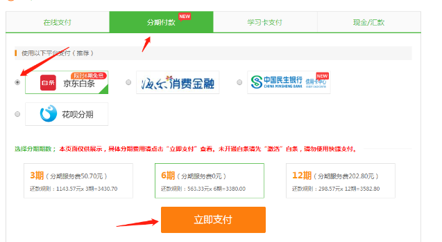 特別提醒:只有6期分期購買服務費為0元,其他期數(shù)暫時沒有優(yōu)惠。